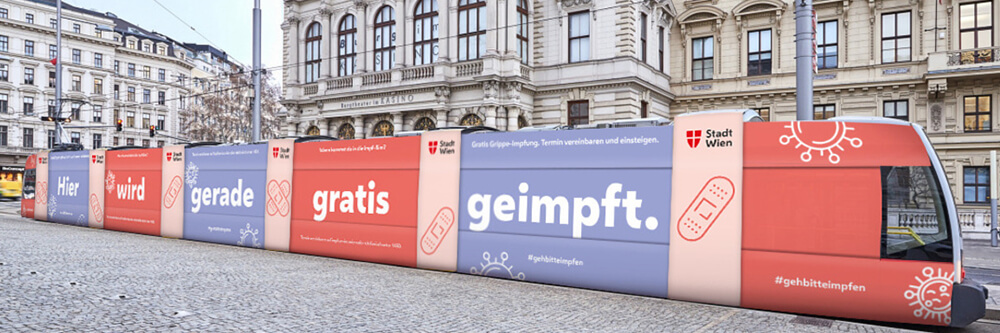 Erstmals kam mit der Impf-Bim auch eine Straßenbahn der Wiener Linien als Unterstützung der kostenlosen Grippeschutzimpf-Aktion der Stadt Wien zum Einsatz. Von 1. Oktober bis 13. November 2020 war das mobile Impfzentrum an insgesamt 31 Tagen für den Stadt Wien Gesundheitsdienst (MA15) an sechs unterschiedlichen Standorten zu finden. Von 09.11. – 13.11.2020 unterstützten die MALTESER am Standort Schottenring die ExpertInnen der MA15 vor Ort. Unsere Aufgaben waren: Mit viel Charme, Fröhlichkeit und Kompetenz konnten wir bei einigen Patienten die Angst ihrer ersten Grippeimpfung nehmen. Viele bedankten sich für die Initiative. Die Straßenbahn wurde in enger Abstimmung mit der MA15 umgebaut. Sie verfügt über einen Empfangsbereich und zwei getrennte Warte- und Impfbereiche. Für Ablauf, Impfstoff und ExpertInnen vor Ort zeichnet die MA15 verantwortlich. Um die kostenlose Grippeschutzimpfung in der Impf-Bim in Anspruch zu nehmen, war – wie in allen anderen Impfzentren auch – eine verbindliche Anmeldung nötig. Die Anmeldung war ausschließlich über die Webseite des Impfservice https://impfservice.wien bzw. unter der Telefonnummer 1450 möglich.