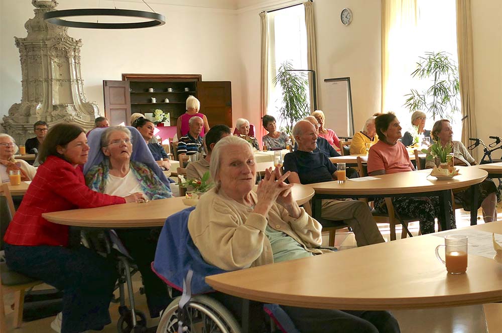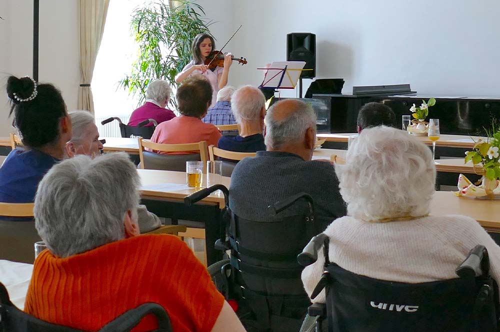 Beim monatlichen Konzert im Malteser Ordenshaus gab es im September eine Premiere: Mit Veronica Scotti begeisterte erstmals eine Ärztin als Violinistin die Bewohnerinnen und Bewohner der Pflegewohnhauses des Malteserordens. Begleitet wurde Sie am Klavier von Lukas Katters. Mit großer Leidenschaft begeisterten die beiden Künstler mit einem abwechslungsreichen Programm, das sie in ihrer Freizeit zum Besten gaben. Die klassischen Stücke von Johann Strauß und Franz Schubert, bis hin zu Karl Kratzls „Des Glück ist ein Vogerl“, bei dem die Bewohnerinnen und Bewohner begeistert mitsangen, sorgten für große Freude. Die musikalische Reise führte weiter über Werke von Giacomo Puccini, bis hin zu Kompositionen von Pablo de Sarasate – ein Genuss für alle Anwesenden. Im Namen der Bewohnerinnen und Bewohner des Malteser Ordenshauses bedanken wir uns für einen gelungenen musikalischen Nachmittag bei den Künstlern für ihr Engagement, aber insbesondere auch bei Frau Eissing-Suchy und Dorothea Hoff von Live Music Now, die durch ihr Sponsoring das Konzert möglich gemacht haben. Und abschließend noch eine Gratulation: Die Sopranistin Katharina Rothen, die eigentlich auch zu Gast hätte sein sollen, nahm höchst erfolgreich bei einem Wettbewerb teil und konnte daher nicht anwesend sein. Wir gratulieren herzlich zum Erfolg beim Wettbewerb und freuen uns auf einen künftigen musikalischen Besuch im Malteser Ordenshaus!