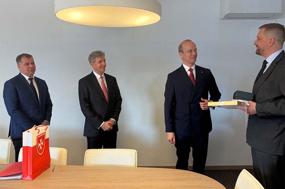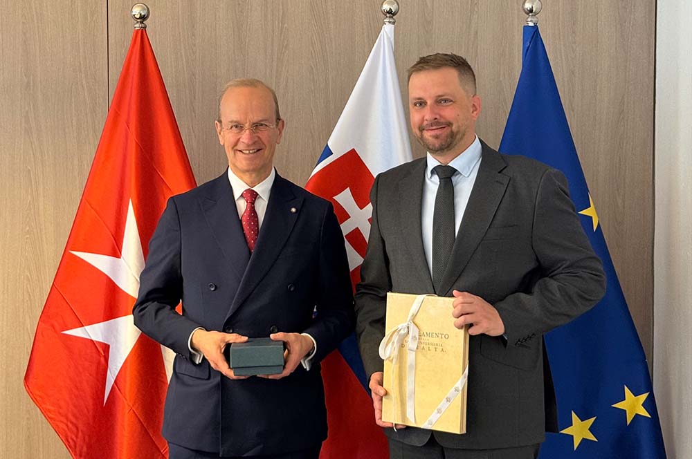 Der offizielle Besuch des Souveränen Malteserordens von Malta in der Slowakischen Republik endete am 22. April 2026 in Bratislava. Nach dem gestrigen Treffen zwischen dem Großmeister Fra’ John T. Dunlap und Präsident Peter Pellegrini stand der heutige Tag im Zeichen der Vertiefung der Kooperationsinitiativen durch eine Reihe hochrangiger institutioneller Gespräche. So wurde der Großkanzler des Malteserordens, Riccardo Paternò di Montecupo, vom slowakischen Außenminister Juraj Blanár empfangen. Im Mittelpunkt der Gespräche standen die Festigung der im Jahr 1993 aufgenommenen diplomatischen Beziehungen sowie die gemeinsame Sorge angesichts der schweren internationalen Krisen, insbesondere im Hinblick auf die Konflikte in der Ukraine und im Nahen Osten. Es wurde der Wille bekräftigt, die Zusammenarbeit im humanitären Bereich zu intensivieren und die Umsetzung gemeinsamer Projekte in Drittländern wie dem Libanon zu prüfen. Dort hat die Slowakei ihre Absicht bekundet, die Aktivitäten des Ordens zu unterstützen. Parallel dazu traf der Großhospitalier Josef D. Blotz den slowakischen Gesundheitsminister Kamil Šaško. Das Treffen bot Gelegenheit, eine Bestandsaufnahme der im Jahr 2019 unterzeichneten Absichtserklärung vorzunehmen, die darauf abzielt, die Gesundheitsversorgung und die soziale Unterstützung im Land zu stärken. Während des Gesprächs wurden die Auswirkungen der von Malteser Aid Slovakia durchgeführten Programme analysiert. Diese gewährleisten jedes Jahr die Verteilung von Tausenden Mahlzeiten an ältere Menschen sowie die medizinische Versorgung der am stärksten benachteiligten Bevölkerungsgruppen, darunter ukrainische Flüchtlinge und Roma-Gemeinschaften.